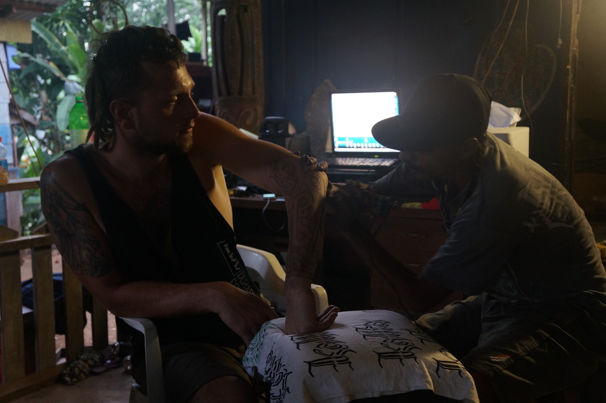 From Port Moresby I flew over to Alotau. After arriving and walking out of the airport the guys from the tourist information picked me up and took me into town. They helped me organise my stay in the transit motel near the harbour. My room neighbours where to other German guys just getting a tattoos from a local.